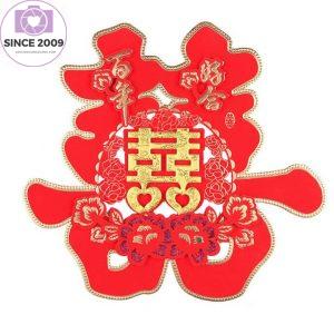 chữ hỷ, chữ hỷ dán, chữ hỷ đám cưới, phụ kiện đám cưới,Chữ hỷ 3D ánh kim trang trí phòng cưới