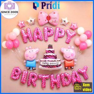 Set Bong Bóng Trang Trí Sinh Nhật Happy Birthday Heo PEPPA – Bóng Bay Trang Trí Sinh Nhật Cho Bé Gái, PRIDI (ĐẦY ĐỦ PHỤ KIỆN)