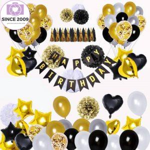 90 Pcs Black and Gold Balloons Decoration Kit, Happy Birthday Banner Star Heart Foil Balloons for Birthday Party